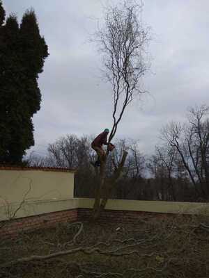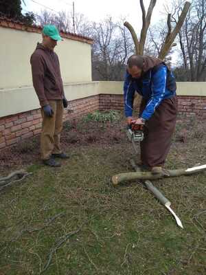 S pomocí bratří kapucínů jsme před Velikonocemi radikálně ořezali vrbu na zahradě penzionu v Olomouci.