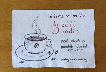 13. ve 13. = 13.9. ve 13 hodin otevíráme znovu kavárnu. Nově otevírací doba bude Po-Čt 13-20 hod.