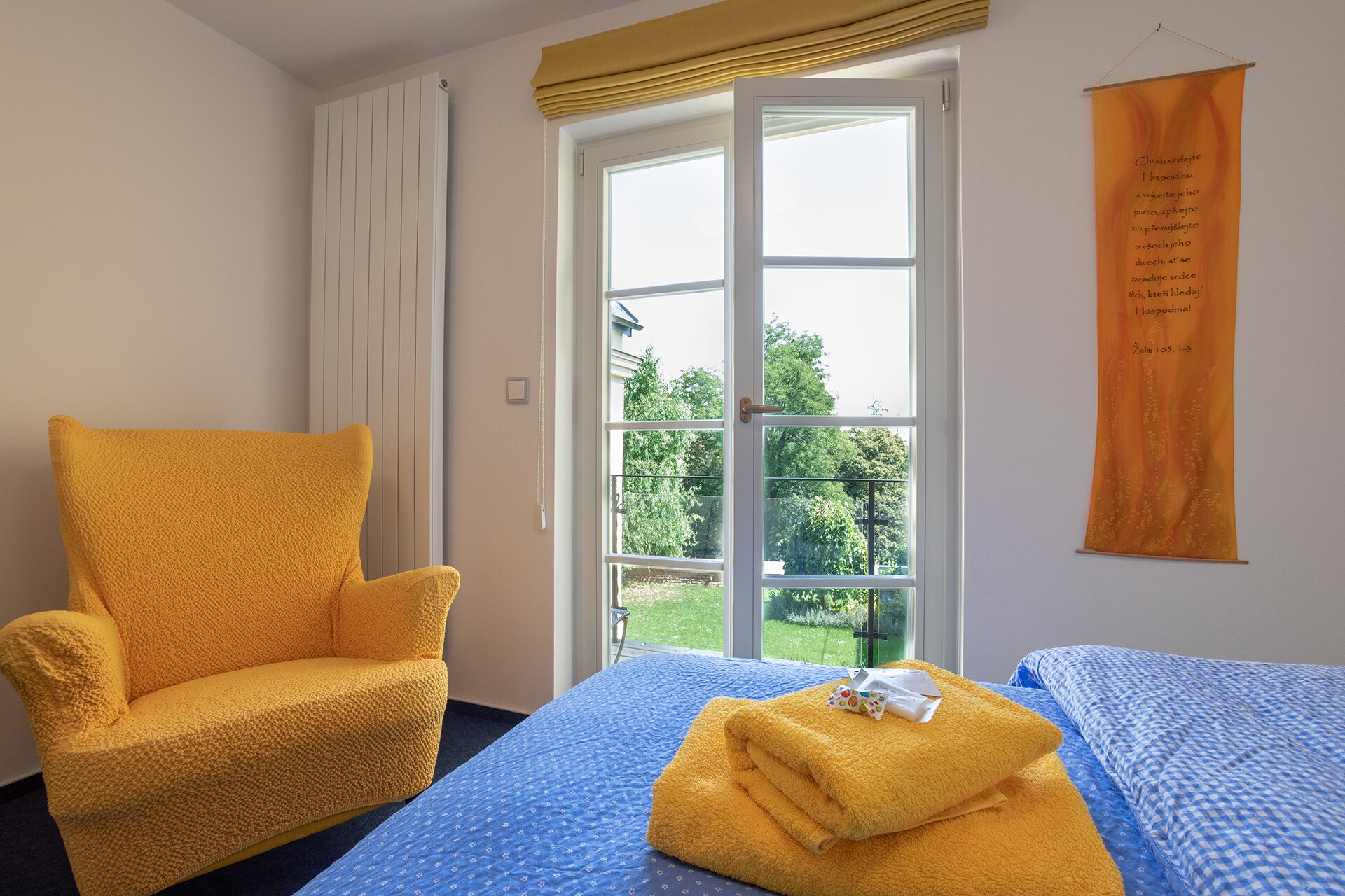 Vybavení pokojů: WIFI, koupelna se sprchou či vanou, WC, k dispozici je menší sál pro přednášky a akce, malá společná kuchyňka pro přípravu drobného občerstvení - lednice, varná konvice, kávovar, vařič, nádobí.