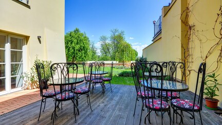 Každý pokoj má svou koupelnu se sprchou či vanou, WC, fénem na vlasy. K dispozici vám je wifi zdarma, prostory sálu s malou kuchyňkou a přístupem do menší zahrady.